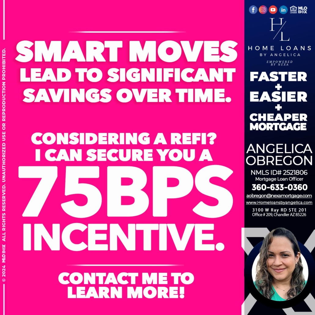 75 BPS - Angelica Obregon -Mortgage Loan OfficerHi, my name is Angelica Obregon. I’m a Loan Officer with NEXA Mortgage LLC., offering personalized mortgage solutions, fast customized quotes, great rates and service with integrity.