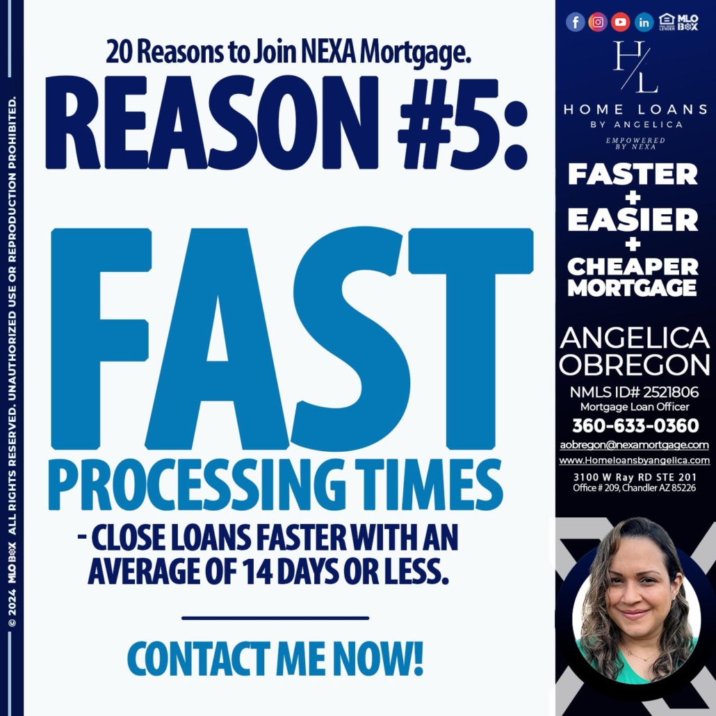 REASON 5 - Angelica Obregon -Mortgage Loan OfficerHi, my name is Angelica Obregon. I’m a Loan Officer with NEXA Mortgage LLC., offering personalized mortgage solutions, fast customized quotes, great rates and service with integrity.